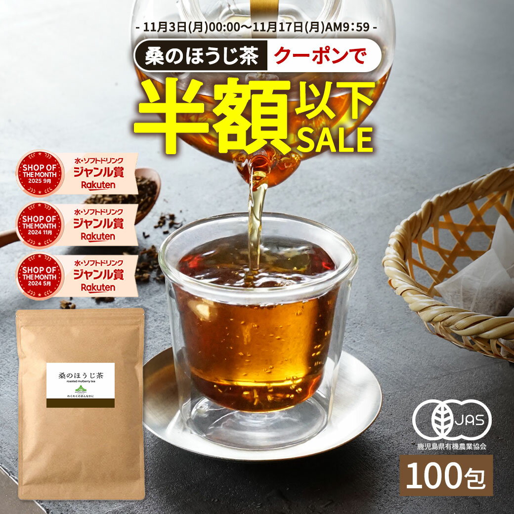 - 商品名: 【1周年記念!クーポンで半額以下】( ほうじ茶 100包 有機 桑の葉 使用 ) 有機JAS 桑茶 桑の葉茶 桑の葉 ティーパック ティーバッグ 送料無料 わくわく園 オーガニック 焙じ茶 お茶 ノンカフェイン くわ 茶 健康 妊婦 美容 国産