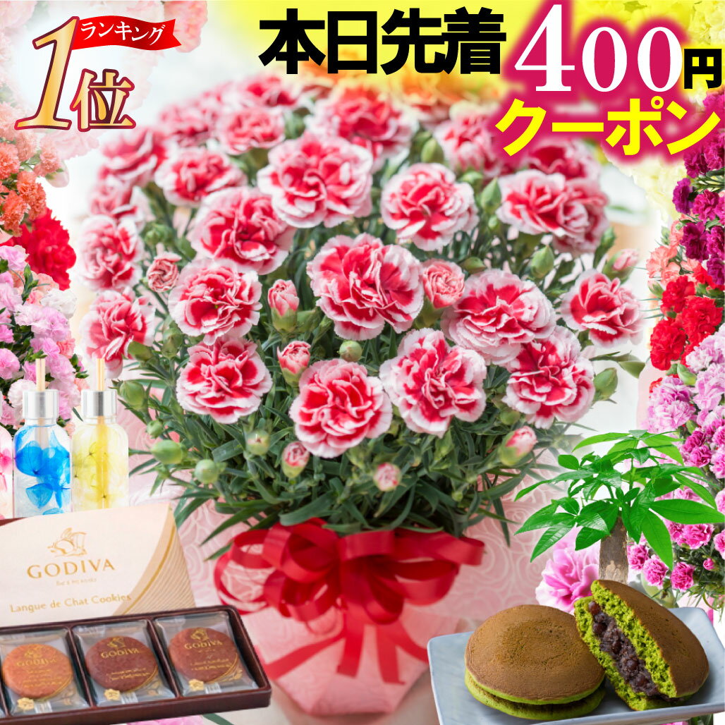 - 商品名: \まもなくお値段上がります本日先着400円クーポン/ 母の日 早割 カーネーション ギフト 花 プレゼント 大きい 5号 鉢植え 2026 選べる特典 スイーツお菓子セット どら焼き GODIVA 年間ランキング1位 FleurTown吉本花城園