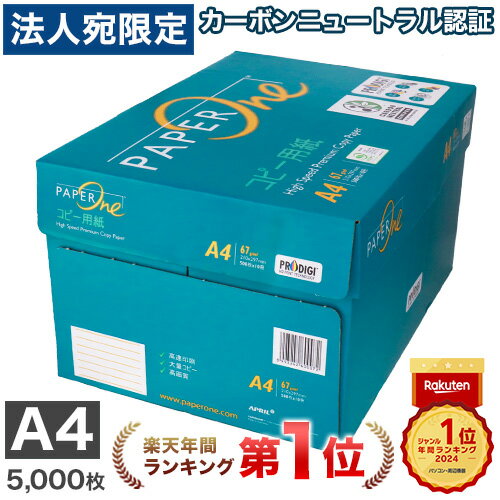 【速報】楽天ランキング:コピー用紙 A4 5000枚(500枚×10冊)ペーパーワン(PAPER ONE) 高白色 カーボンニュートラル プロデジ高品質 保存箱仕様 PEFC認証 用紙 OA用紙 印刷用紙 無地《商品到着後、レビュー書いて次回使えるクーポンプレゼント》『送料無料(一部地域除く)』(4.73点)