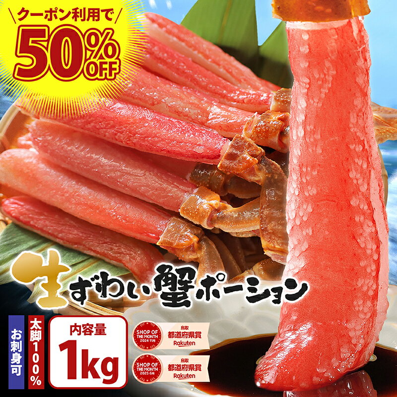 【話題】楽天ランキング:先着枚数限定クーポンで【1kg】送料無料8,790円~お刺身OK!生ずわいがにプレミアム太脚ポーションたっぷり1kg(16〜40本)※4サイズから選択できます。(4.38点)