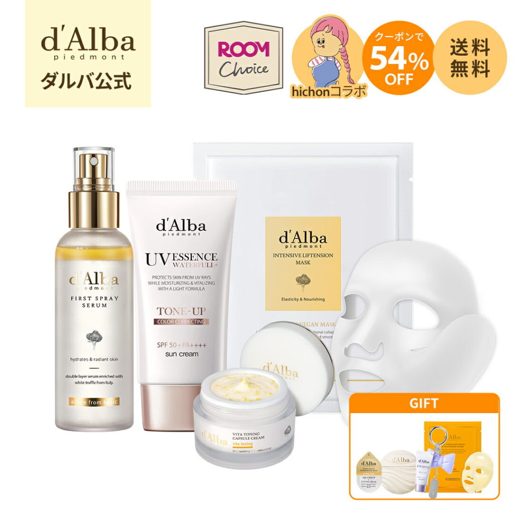 【速報】楽天ランキング:\クーポンで54%OFF+送料無料/【 d’Alba ( ダルバ ) 公式 】hichon×d`Alba「ROOMコラボ」【ホリデースペシャルセット】ミスト 導入美容液 化粧水 日焼け止め クリーム フェイス パック シートマスク ビタミン ナイアシンアミド 保湿 鎮静 潤い ツヤ 弾力 エイジング(0.0点)