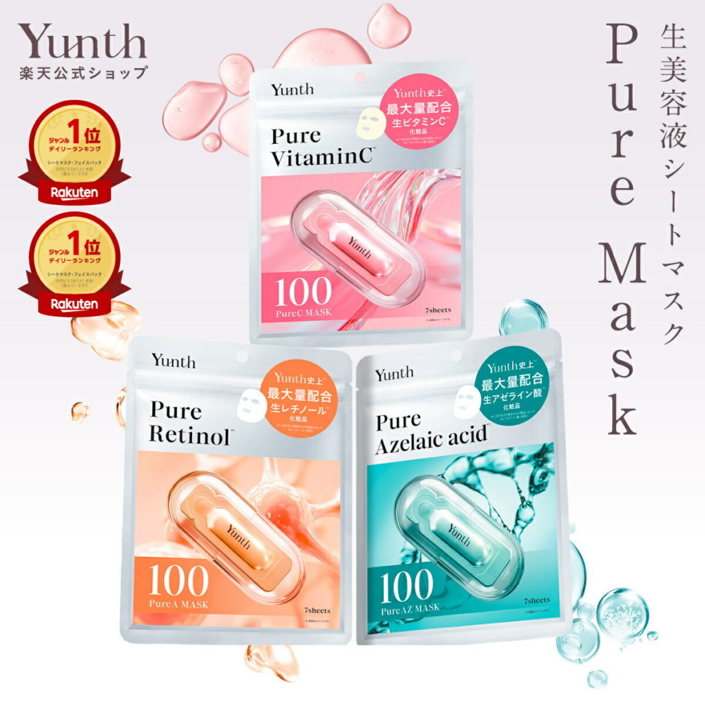 【速報】楽天ランキング:【公式】Yunth ピュアマスク Pure Mask 7枚入り|生ビタミンC 生レチノール 生アゼライン酸|シートマスク パック フェイスパック 毎日 おすすめ|ユンス ゆんす(4.67点)